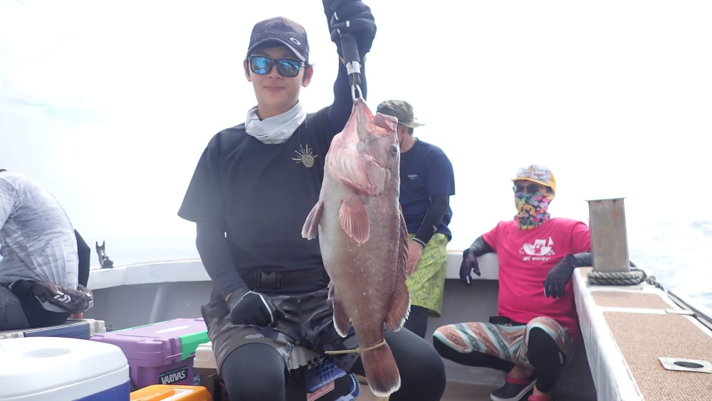 中盤、時間待ちのジギングで良型の根魚とちっちゃいチビキのみゲットン(^^;)