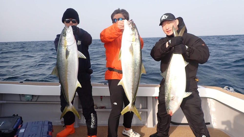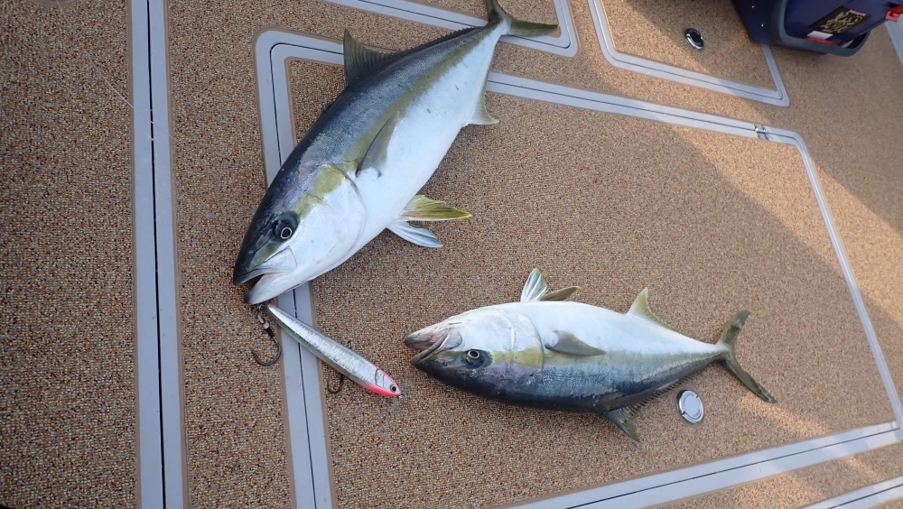 朝一、バイトチェイスがあり巨ブリにワラサに混ざりヒラマサ数匹をゲットン(^^♪